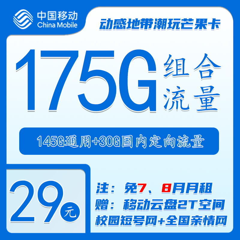 潮玩芒果卡-29元-大流量卡-免7 8月月租